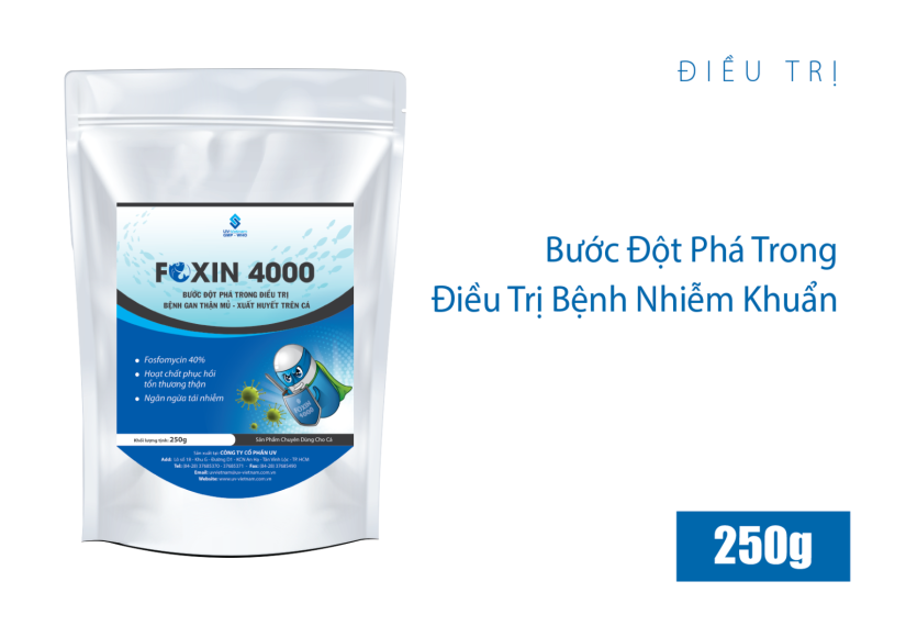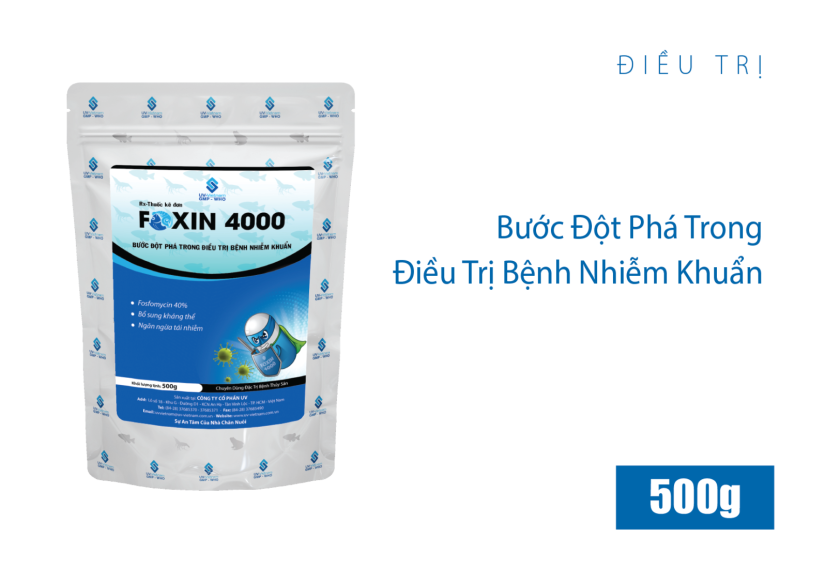 - Cá giống: Dùng 100g FOXIN 4000/1,2-1,5 tấn cá hoặc 100g/100.000-40.000 giống. Trộn 1 cử/ngày liên tục 3-5 ngày.