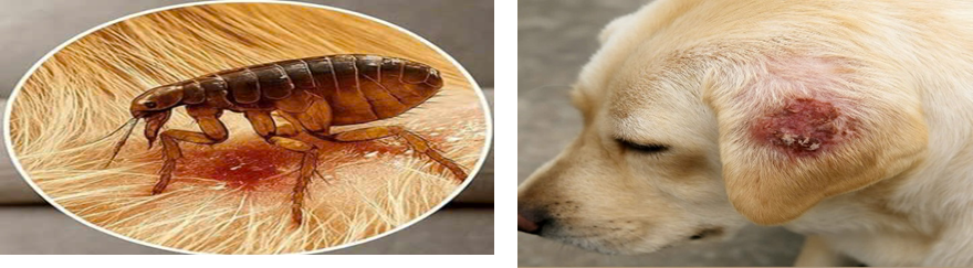 Ảnh 2. Bọ chét ký sinh trên da chó gay viêm da