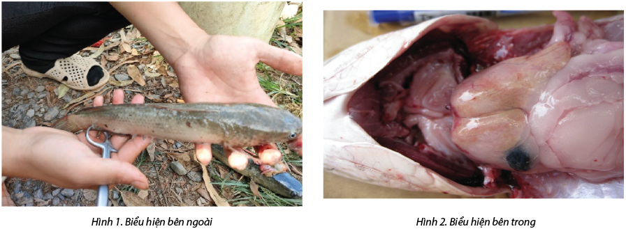 - Biểu hiện bên trong: Cá có biểu hiện thiếu máu khi giải phẩu. Gan cá sưng, có màu trắng hoặc màu vàng nâu, có dấu hiệu hoại tử. Thận cá sưng, màu nâu sậm. Ruột cá bị xuất huyết nhẹ.