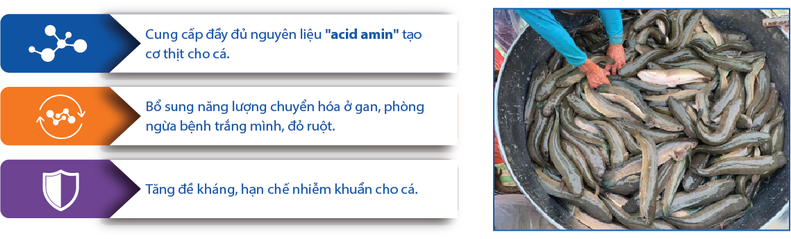 Kích thích cá tăng trọng đều, tăng đề kháng (định kỳ cho ăn 3-4 ngày/ tuần)
