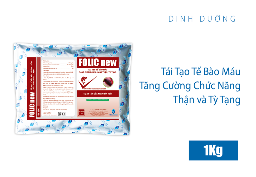 - FOLIC new tái tạo hồng cầu, làm bền mạch máu, hạn chế xuất huyết, đốm đỏ cơ thịt ở cá.