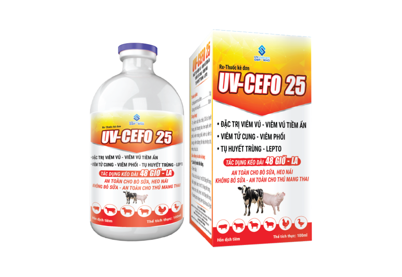 - Trị viêm ruột tiêu chảy, E.Coli, tụ huyết trùng, phó thương hàn, hen suyễn, viêm phổi, viêm màng phổi, viêm vú, viêm tử cung, viêm đường tiết niệu trên lợn, chó, mèo, trâu, bò.