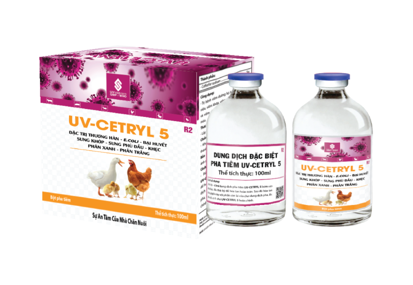 - Gà con, vịt con: pha loãng 1ml UV-CETRYL 5 với 9ml nước cất hoặc nước muối sinh lý, sau đó dùng dung dịch pha với liều như sau: