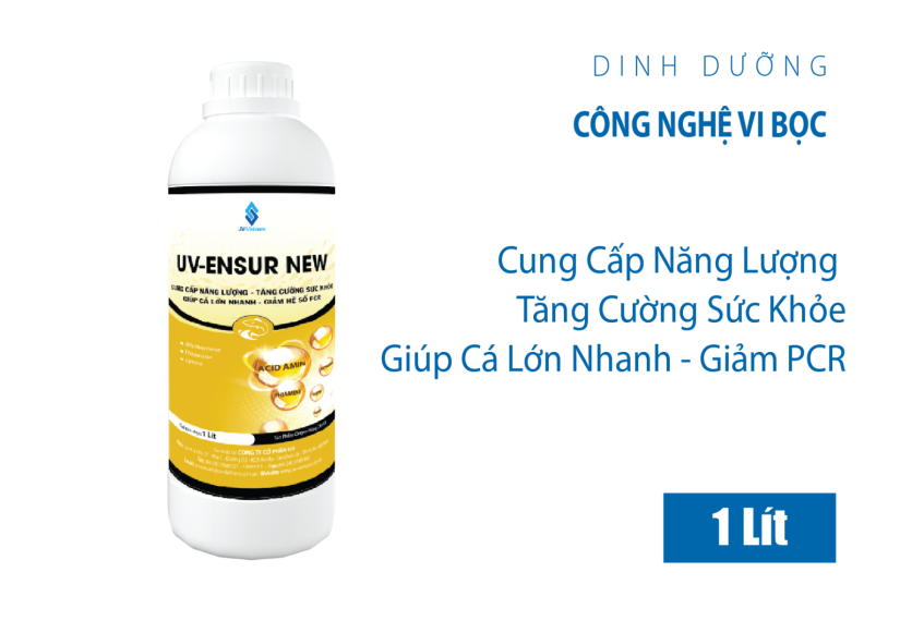 - UV-ENSUR NEW được tổng hợp từ các acid amin thiết yếu và các ion điện giải ở dạng dễ hấp thu, có tác dụng cung cấp năng lượng, điều hòa quá trình trao đổi chất của cá.