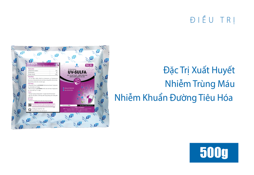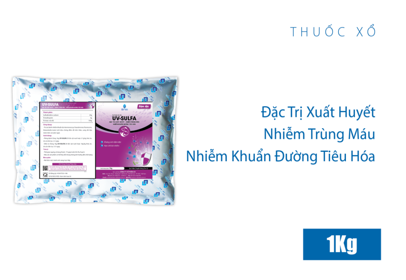 - Phòng bệnh: Dùng 1kg UV-SULFA/30 tấn vật nuôi hoặc 5-7g/kg thức ăn, cho ăn liên tục 2-3 ngày.